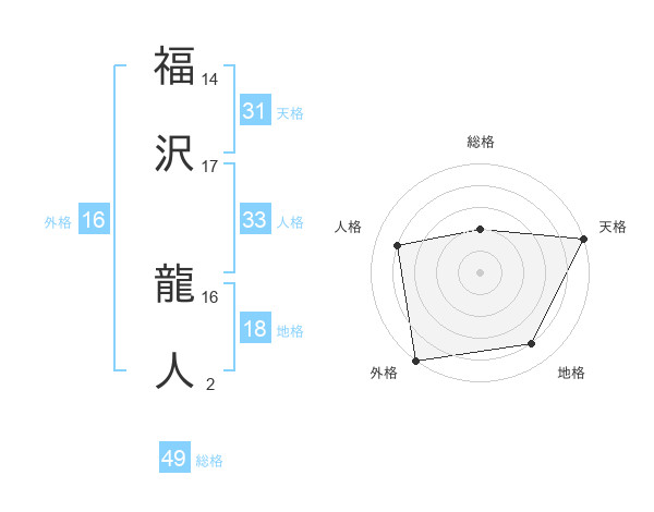 福沢 龍人さんを姓名の画数から五運を鑑定