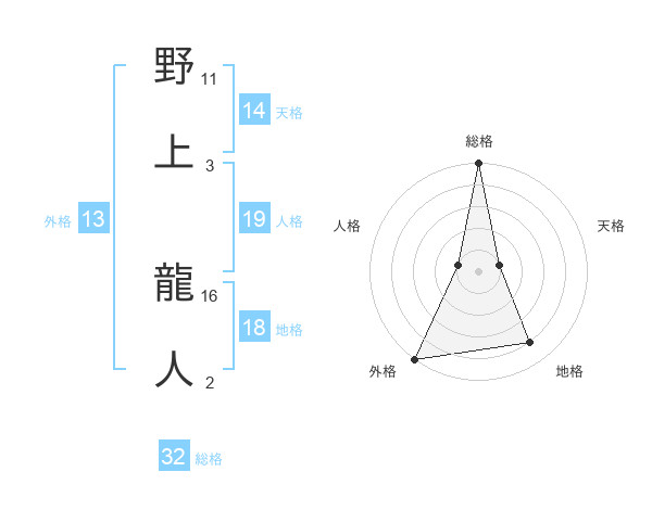 野上 龍人さんの総格は32画の5点!