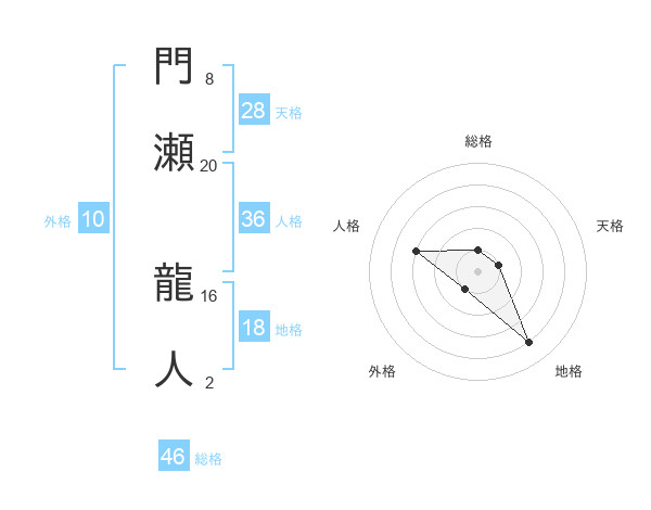 門瀬 龍人さんの総格は46画の1点!