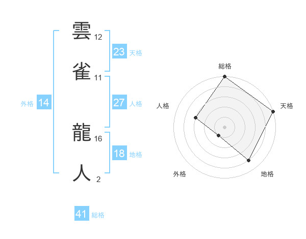 雲雀 龍人さんの天格は23画の5点!