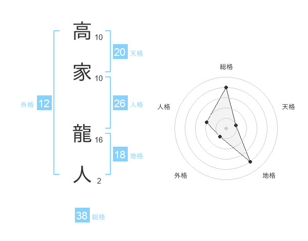 高家 龍人さんの総格は38画の4点!