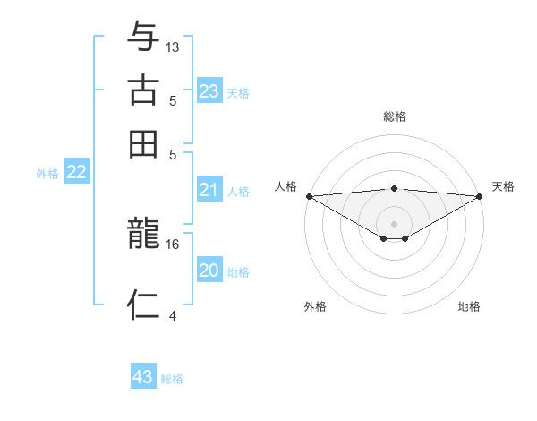 与古田 龍仁さんを姓名の画数から五運を鑑定