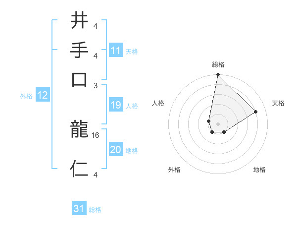 井手口 龍仁さんを姓名の画数から五運を鑑定