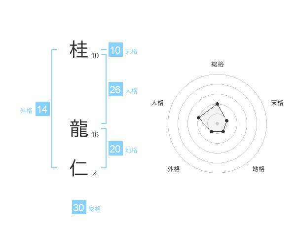 桂 龍仁さんの総格は30画の2点!