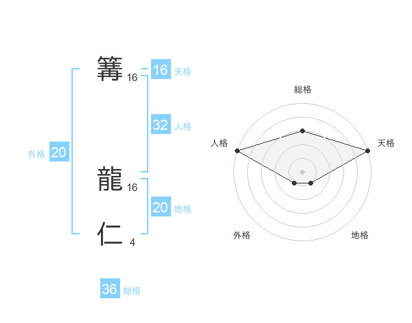 篝 龍仁さんの天格は16画の5点!