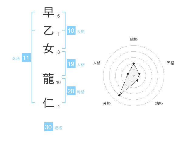 早乙女 龍仁さんを姓名の画数から五運を鑑定