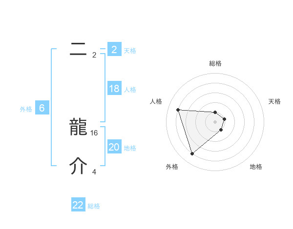 二 龍介さんの総格は22画の1点!