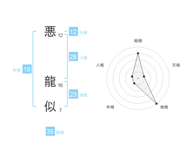 悪 龍似さんの総格は35画の4点!