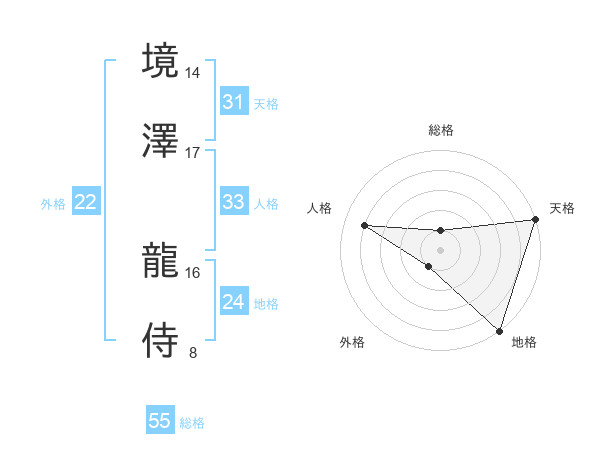 境澤 龍侍さんの天格は31画の5点!