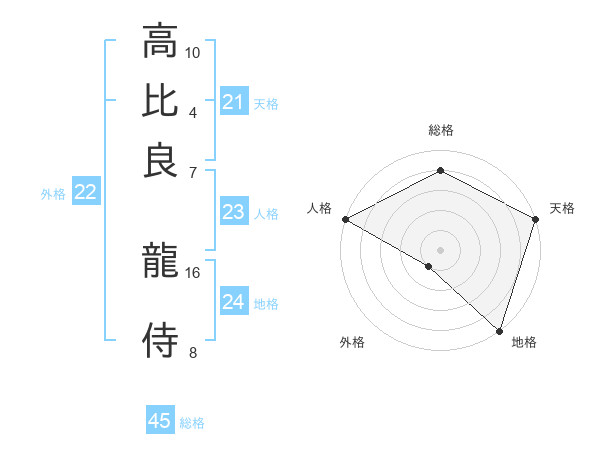 高比良 龍侍さんの総格は45画の4点!
