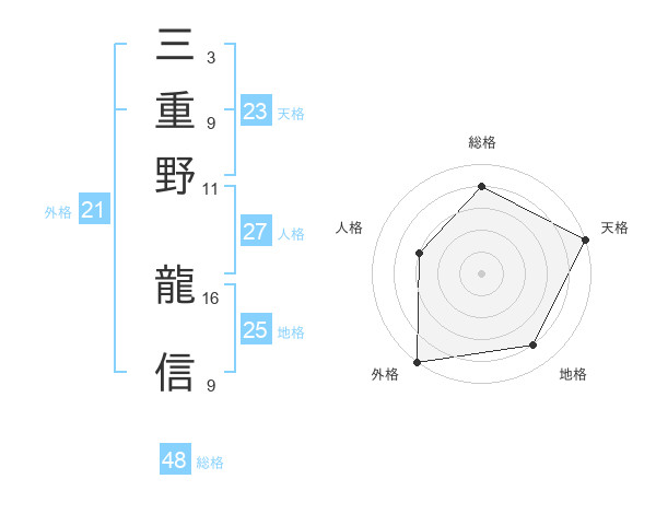 三重野 龍信さんを姓名の画数から五運を鑑定