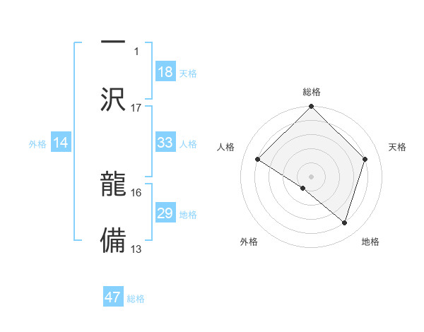 一沢 龍備さんの総格は47画の5点!