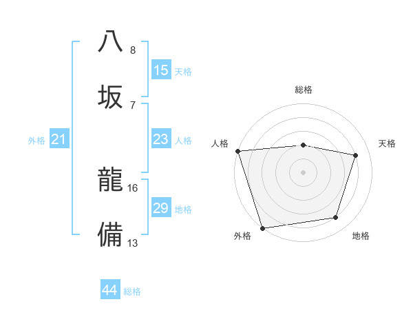 八坂 龍備さんの総格は44画の2点!