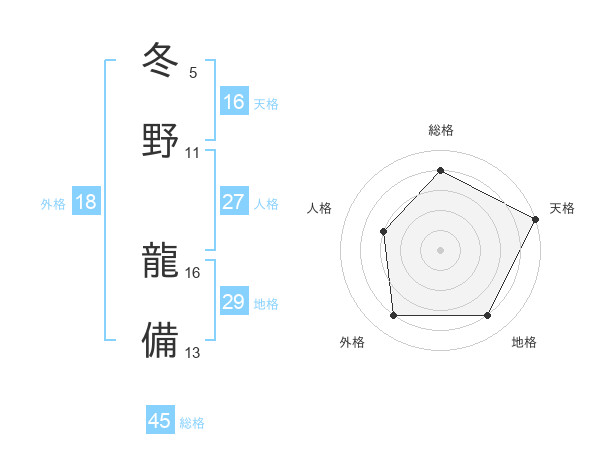 冬野 龍備さんを姓名の画数から五運を鑑定