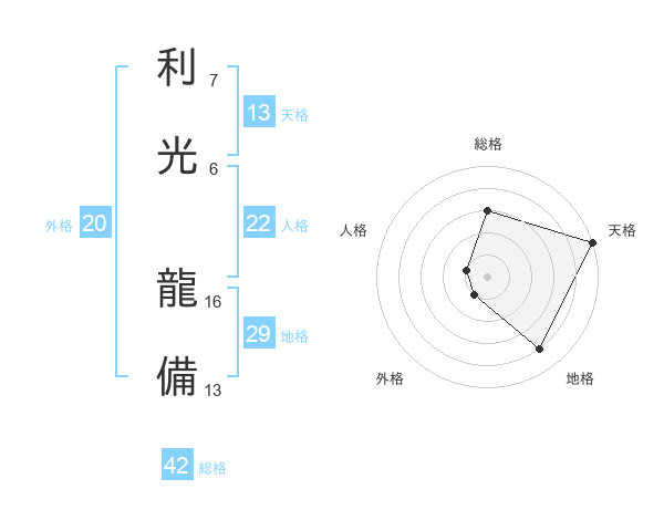 利光 龍備さんの総格は42画の3点!