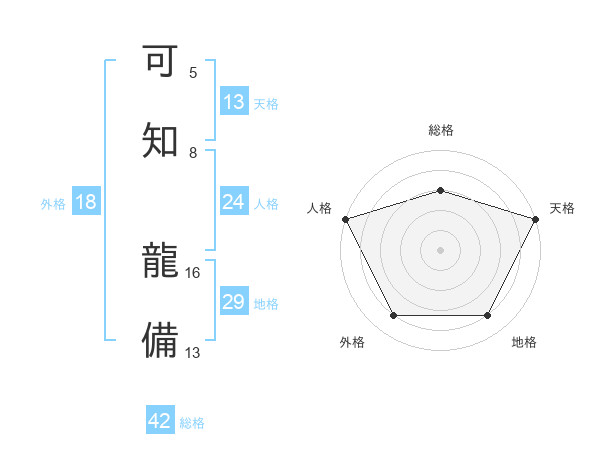 可知 龍備さんの天格は13画の5点!