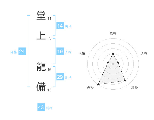 堂上 龍備さんを姓名の画数から五運を鑑定