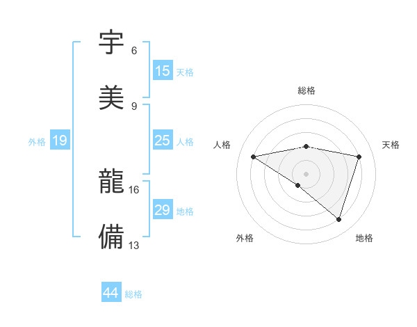 宇美 龍備さんを姓名の画数から五運を鑑定