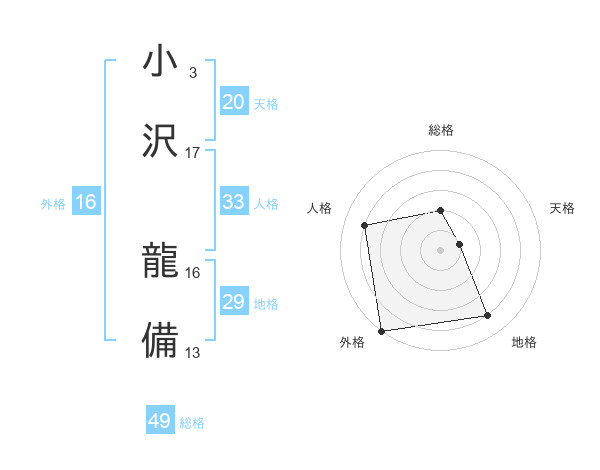 小沢 龍備さんを姓名の画数から五運を鑑定