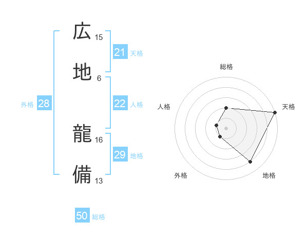 広地 龍備さんの天格は21画の5点!