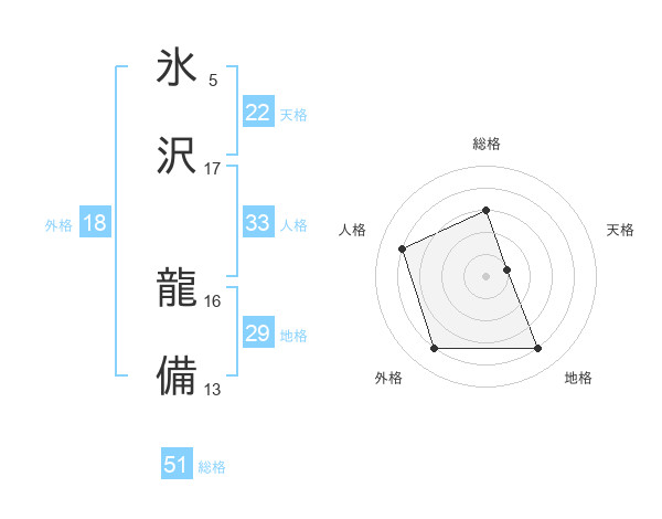 氷沢 龍備さんを姓名の画数から五運を鑑定