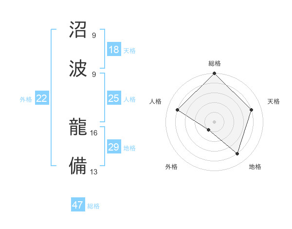 沼波 龍備さんを姓名の画数から五運を鑑定