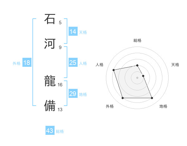 石河 龍備さんを姓名の画数から五運を鑑定