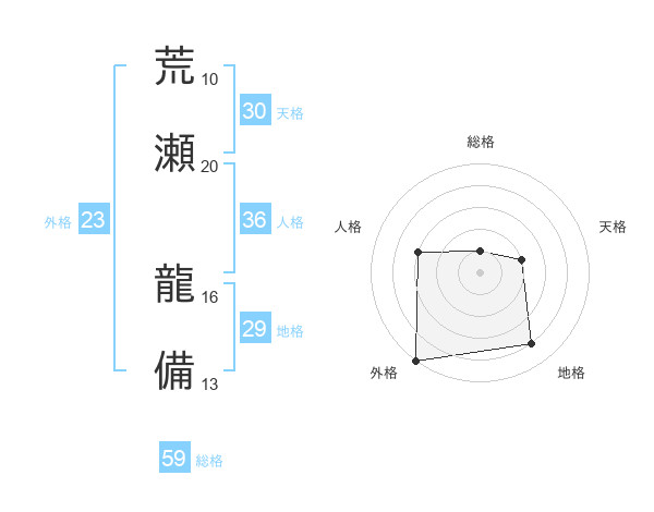 荒瀬 龍備さんの総格は59画の1点!