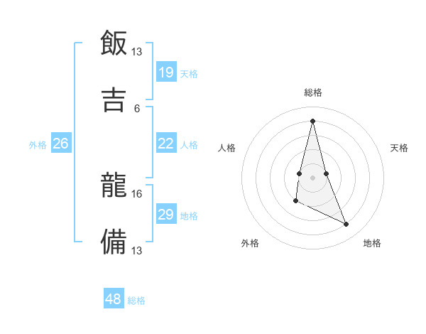 飯吉 龍備さんを姓名の画数から五運を鑑定