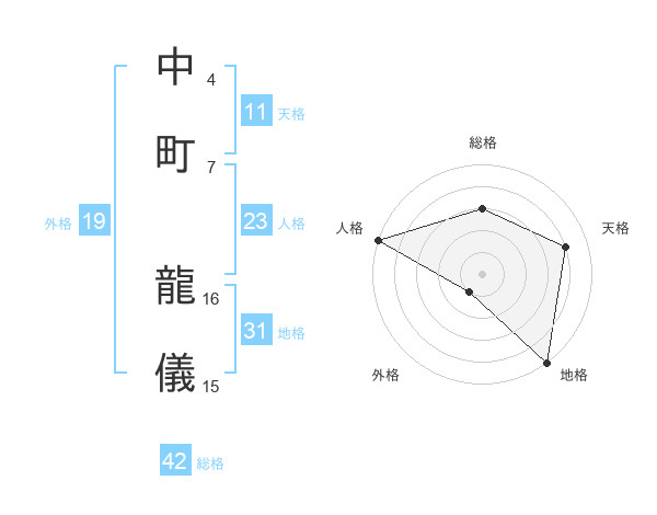 中町 龍儀さんを姓名の画数から五運を鑑定