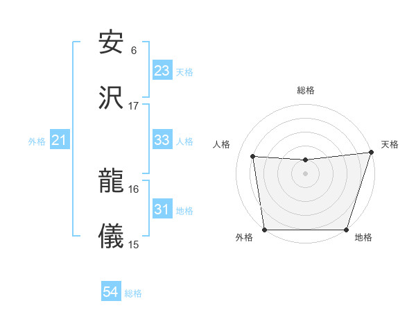 安沢 龍儀さんの天格は23画の5点!