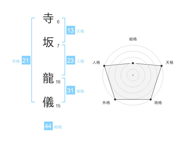 寺坂 龍儀さんの外格は21画の5点!