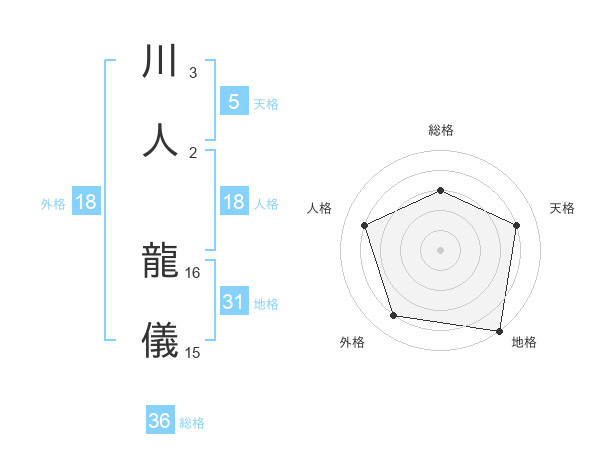 川人 龍儀さんの天格は5画の4点!