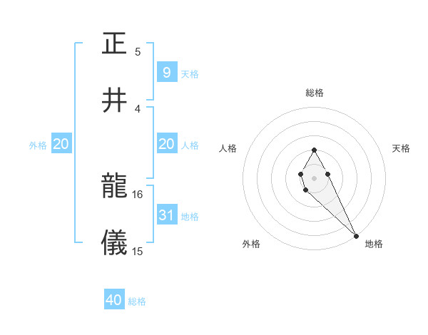 正井 龍儀さんの外格は20画の1点!