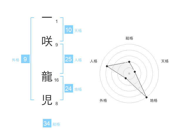 一咲 龍児さんの総格は34画の2点!