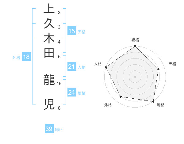 上久木田 龍児さんを姓名の画数から五運を鑑定