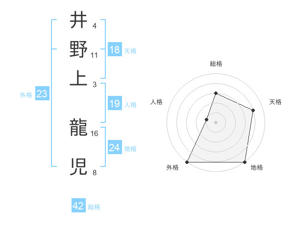 井野上 龍児さんを姓名の画数から五運を鑑定