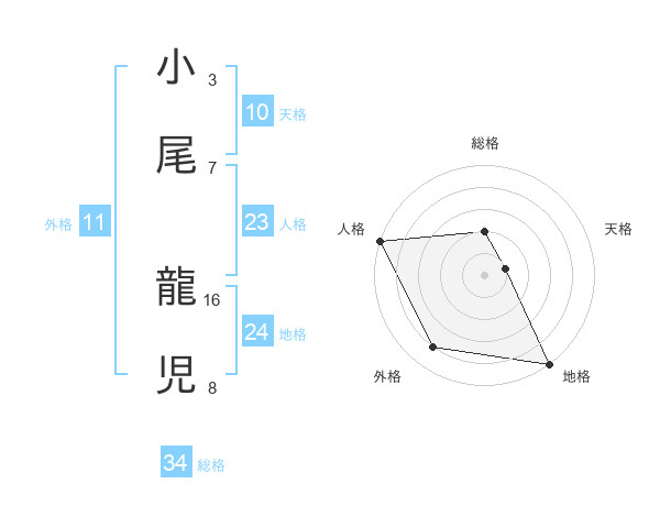 小尾 龍児さんを姓名の画数から五運を鑑定
