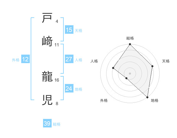 戸﨑 龍児さんを姓名の画数から五運を鑑定