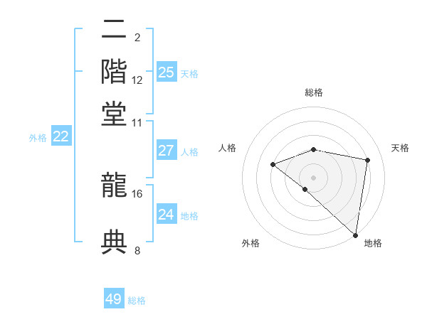 二階堂 龍典さんの天格は25画の4点!