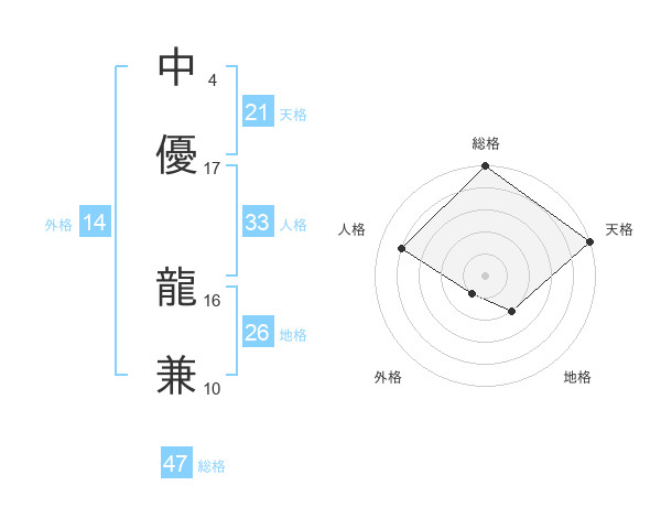 中優 龍兼さんの総格は47画の5点!