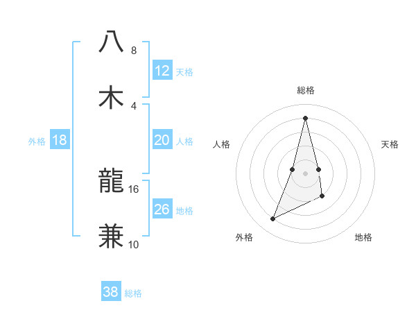 八木 龍兼さんの総格は38画の4点!