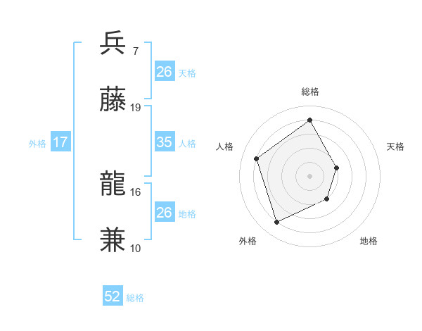 兵藤 龍兼さんを姓名の画数から五運を鑑定
