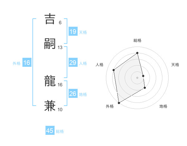 吉嗣 龍兼さんの総格は45画の4点!