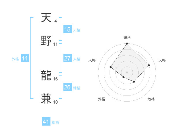 天野 龍兼さんの総格は41画の5点!