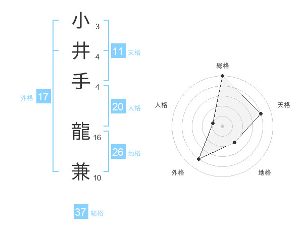 小井手 龍兼さんの総格は37画の5点!