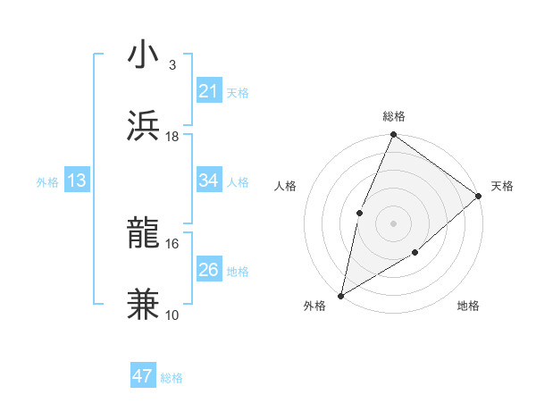小浜 龍兼さんを姓名の画数から五運を鑑定