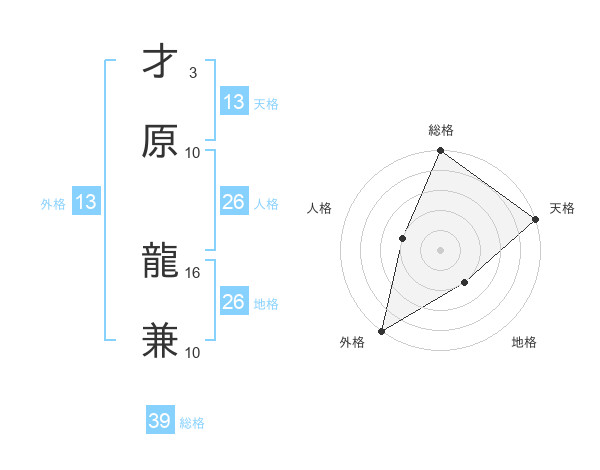 才原 龍兼さんを姓名の画数から五運を鑑定