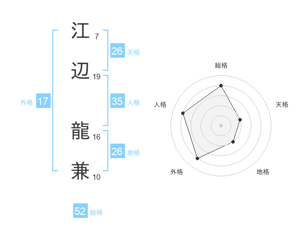江辺 龍兼さんを姓名の画数から五運を鑑定