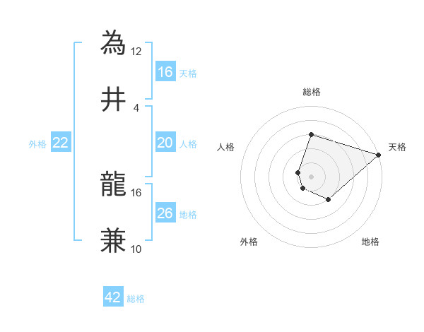 為井 龍兼さんの天格は16画の5点!